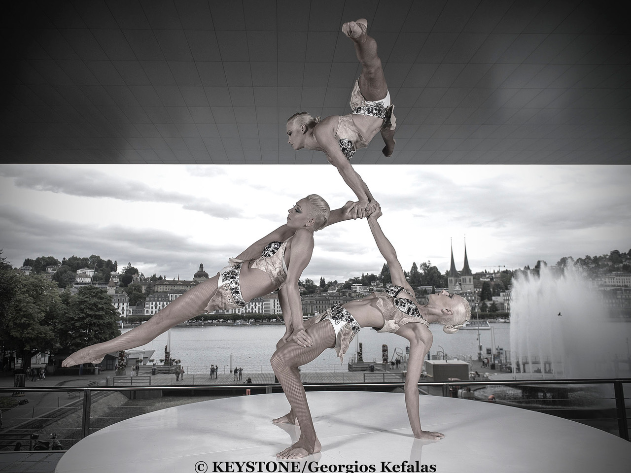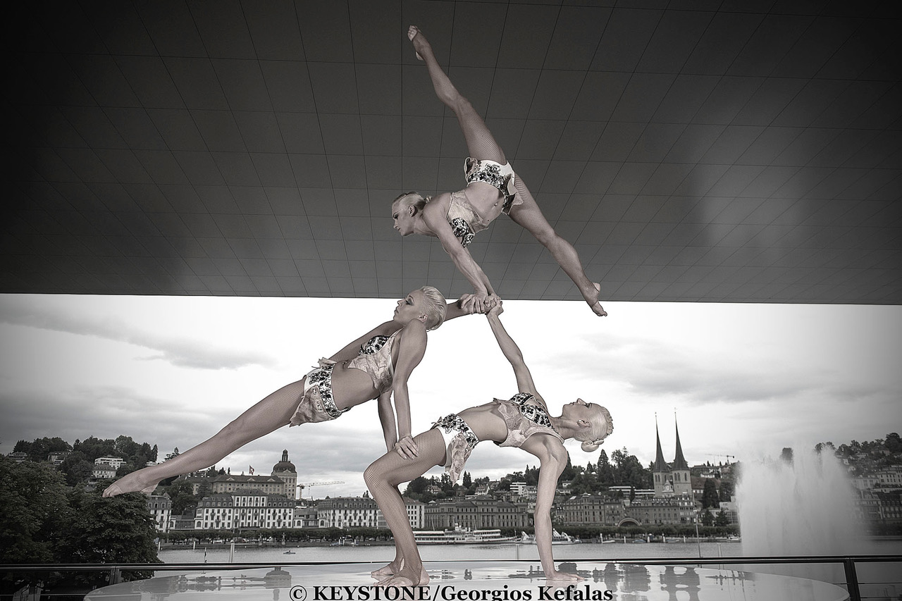 Die drei Sportakrobatinnen von Trio Bellissimo haben ihre Ausbildung an der staatlichen Zirkusschule in Kiew genossen.